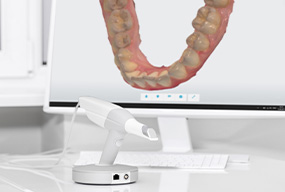 We scan your teeth in our clinic using a CAD/CAM intraoral scanner.