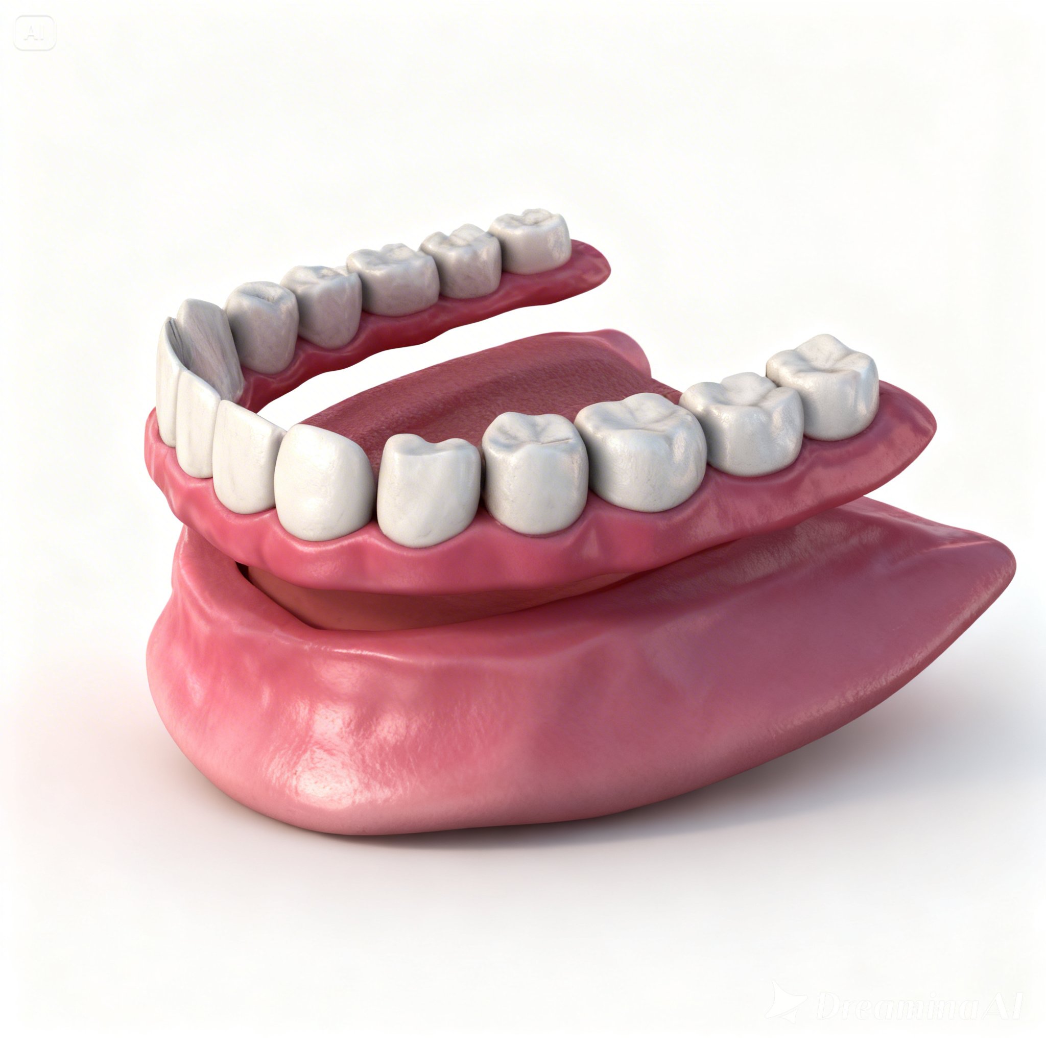 Dentures are removable appliances with artificial teeth. They are typically made of plastic (acrylic) or a combination of plastic and metal (cobalt-chromium). Alternatively, you can opt for flexible dentures, which are softer than traditional plastic ones. The innovative biocompatible flexible material allows dentures to adapt to the constant movement and flexibility of your mouth.